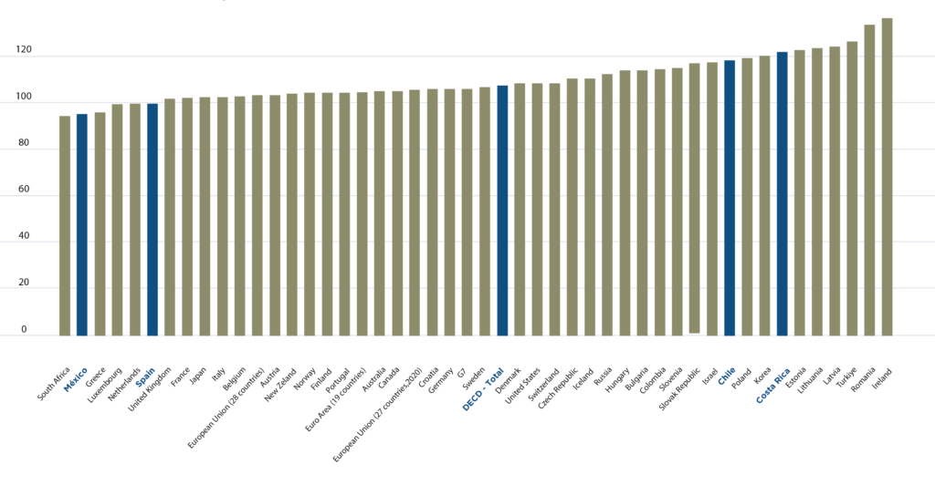 La respuesta a la pregunta anterior parecería muy complicada de responder; sin embargo, será fácil de dilucidar después de analizar las gráficas extraídas del último informe de la OCDE en la que se evalúa la información de 46 países.
